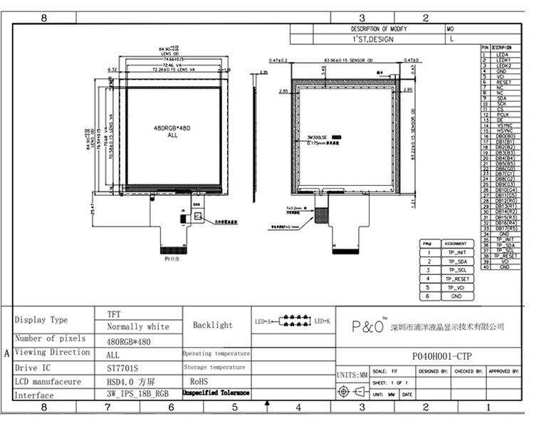 pantalla cuadrada todo el ángulo de visión 262k color 18 bits interfaz rgb ctp pantalla LCD táctil